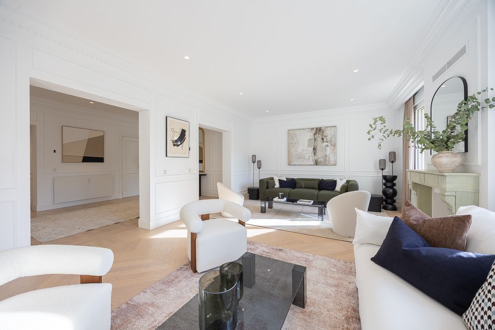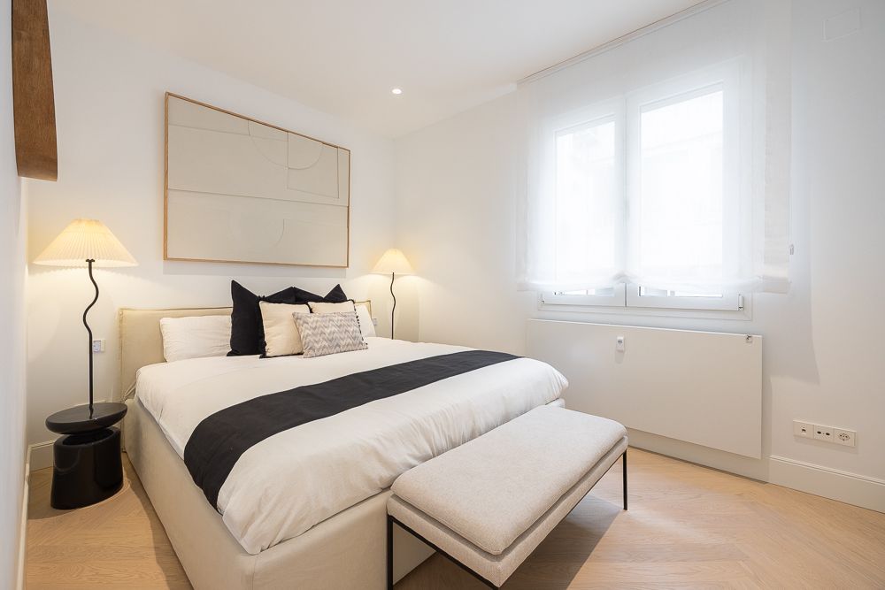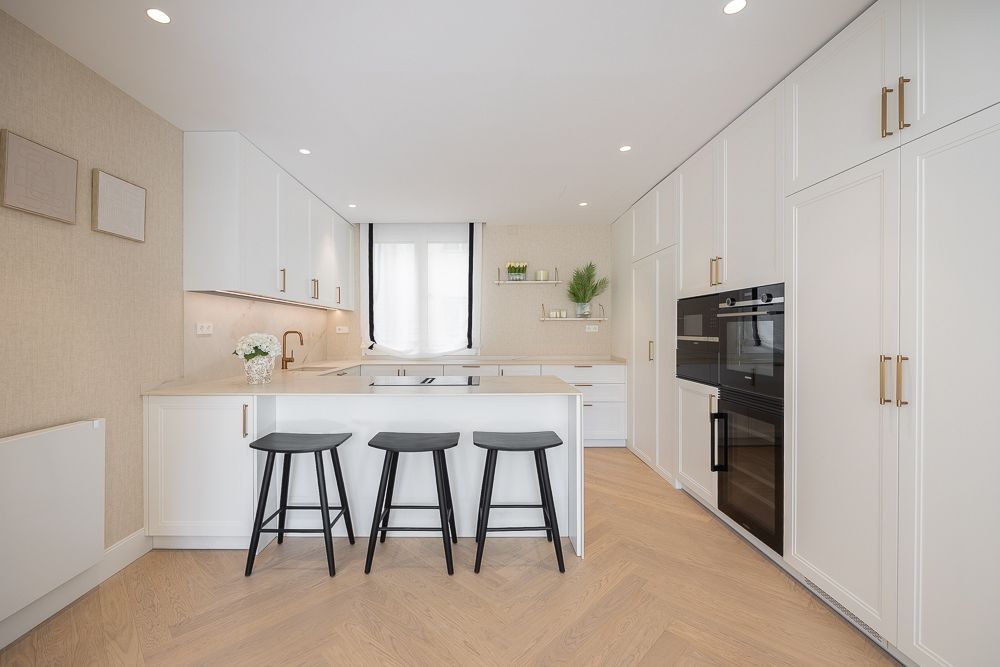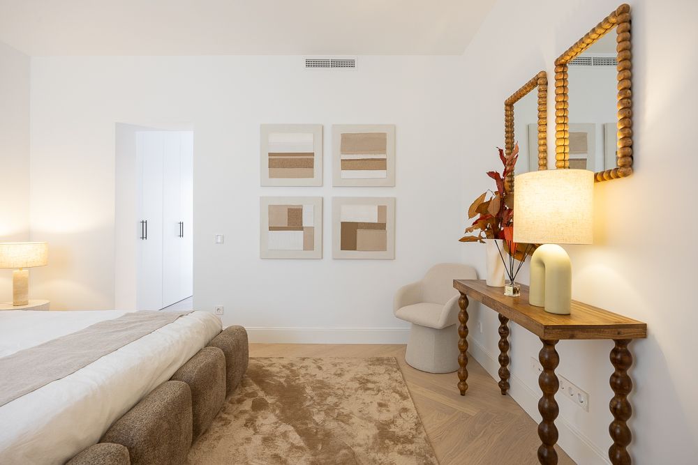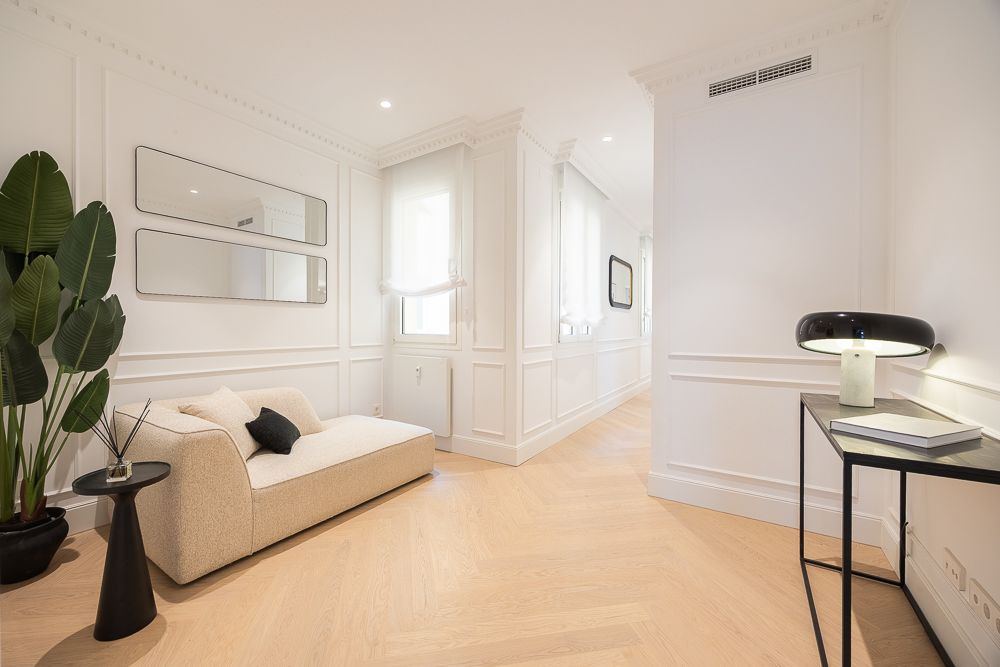 Las mejores calidades del mercado se reflejan en los acabados: encimera porcelánica, suelos de roble natural en espiga y armarios empotrados forrados de suelo a techo con luz LED para maximizar el espacio. La vivienda está equipada con aire acondicionado por conductos y domótica para un control total del hogar. El edificio, con su gran portal señorial, ofrece portero, escalera, ascensor y puerta de servicio, asegurando comodidad y seguridad. Además, incluye un trastero en el sótano para mayor almacenamiento.