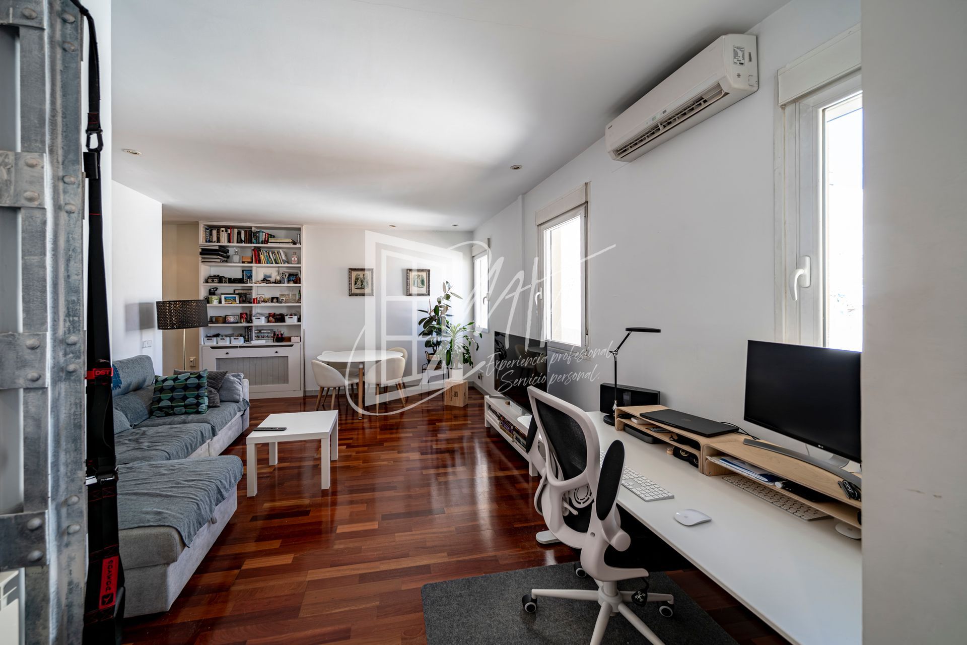 El amplio salón comedor es ideal para disfrutar de momentos en familia o con amigos. El dormitorio principal cuenta con baño en suite y una práctica zona de vestidor, mientras que el segundo dormitorio es perfecto para niños o como oficina. Además, dispone de un baño completo independiente y una cocina equipada con todos los electrodomésticos necesarios.